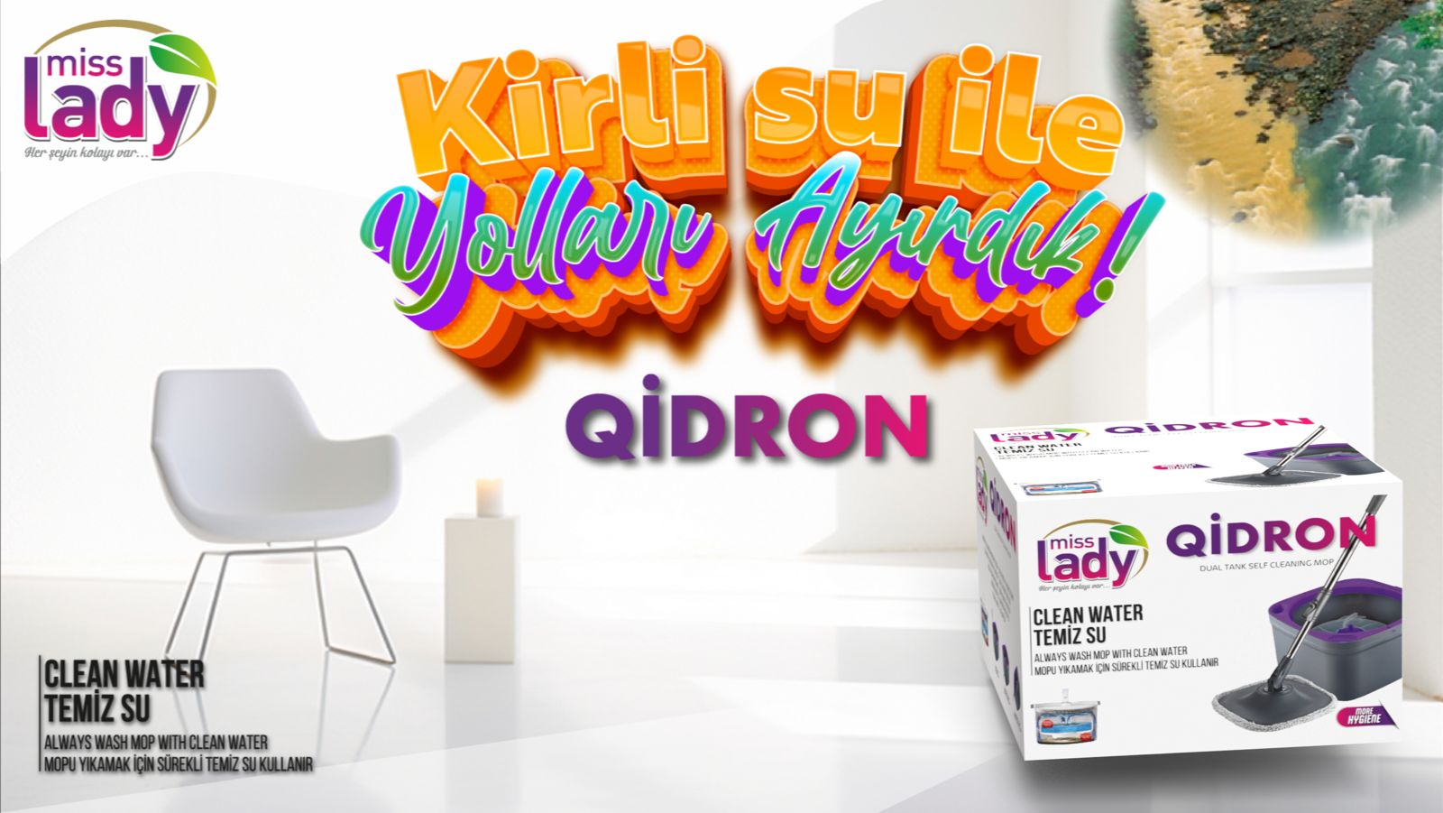MİSS LADY Temiz Su Ile Kirli Suyu Ayıran Otomatik Temizlik Seti